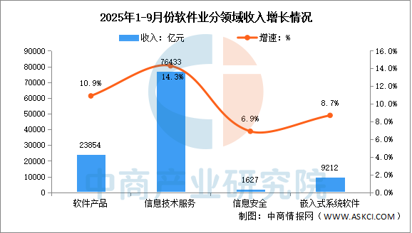 2025年1-9月中國軟件業(yè)務(wù)收入及分領(lǐng)域運(yùn)行情況分析(圖)